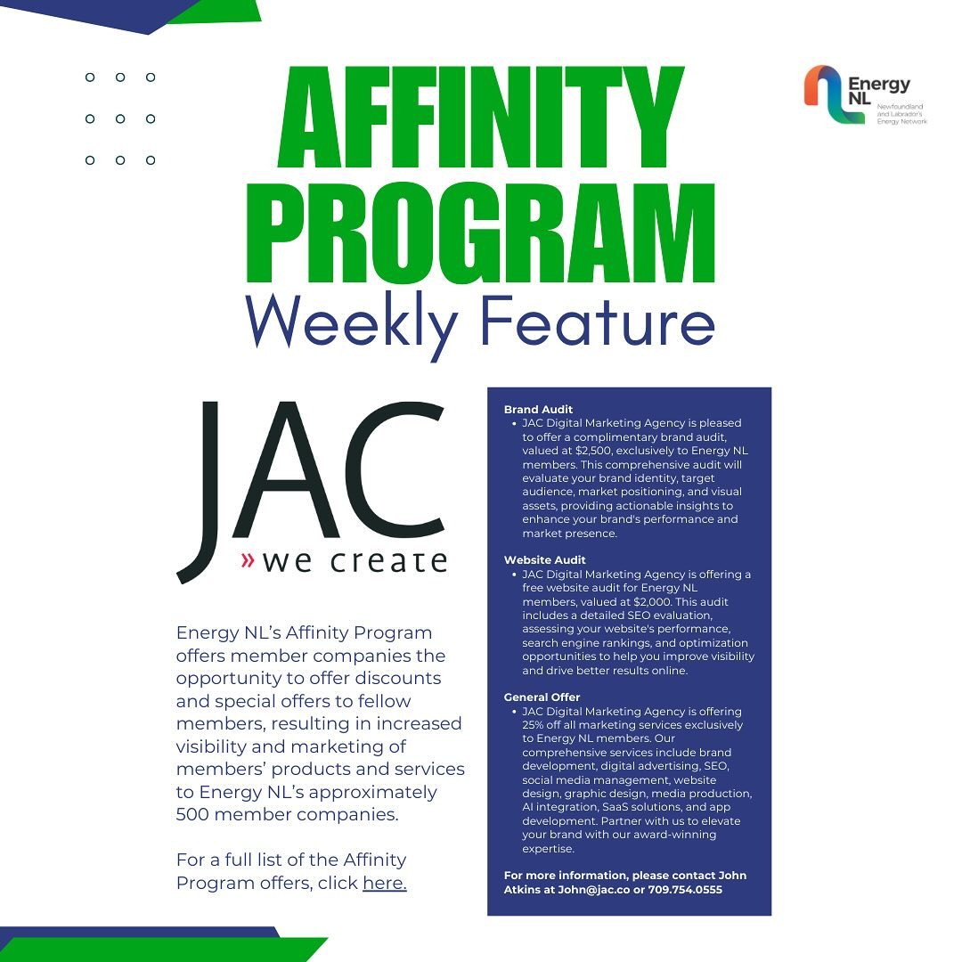 JAC is excited to partner with the Energy NL Affinity Program, offering exclusive benefits designed to help member companies enhance their brand and digital footprint. With access to a network of over 500 Energy NL members, this program provides the perfect platform to increase visibility, build valuable connections, and drive business growth across Newfoundland and Labrador’s energy sector.